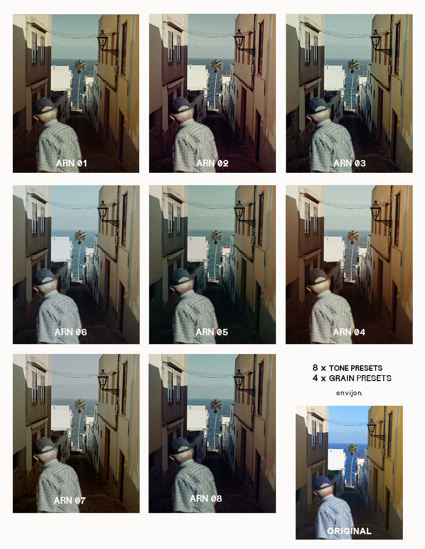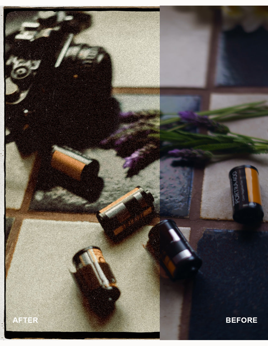 - 4 x Stylised film grain presets presented in varying strengths & textures.